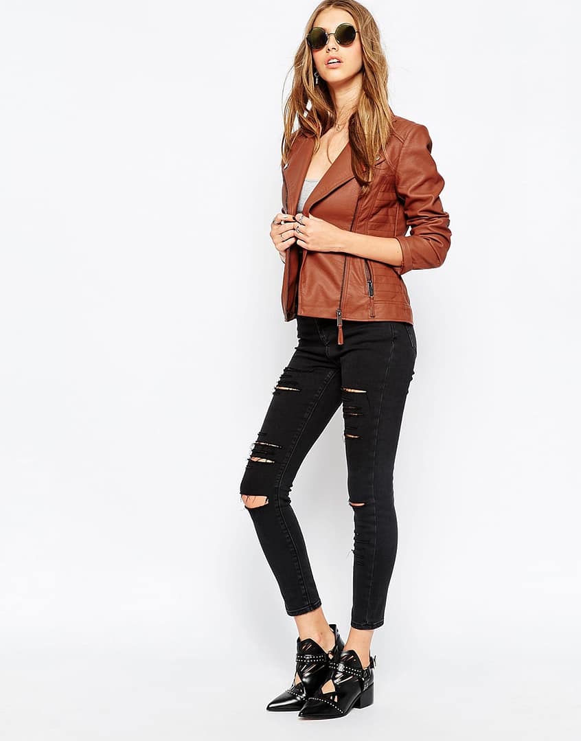 Ultimate Biker Jacket With Stitch Detail in Vegan Leather
